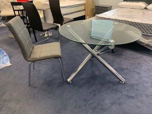 (ROCCA- CORA GREY- 5)- 39" ROUND- GLASS DINING TABLE- WITH 4 CHAIRS- SUPPLIER CLEARANCE- TEXT OR WHATSAPP 416 319 8851 FOR STOCK AVAILABILITY BEFORE PAYING