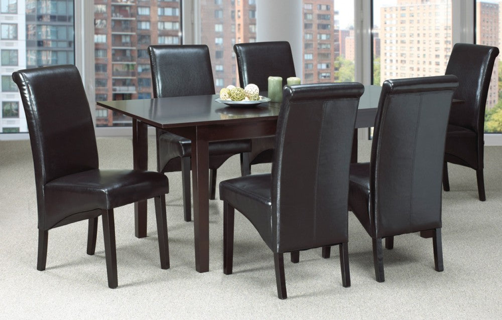 (3009- 220 ESPRESSO- 7)- EXTENSION WOOD DINING TABLE- WITH 6 LEATHER CHAIRS- OUT OF STOCK UNTIL NOVEMBER 22, 2025