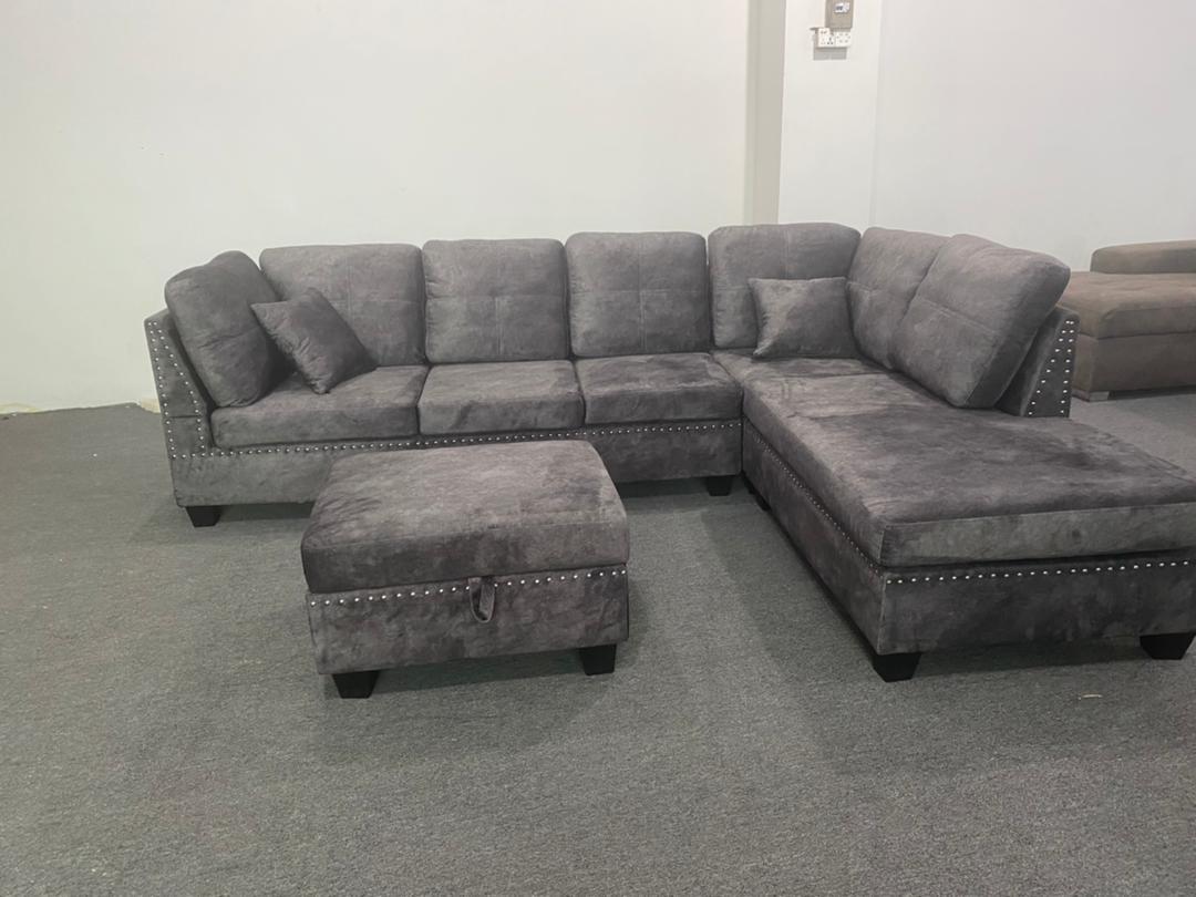 (CC911 GREY)- FABRIC- REVERSIBLE- SECTIONAL SOFA- WITH STORAGE OTTOMAN