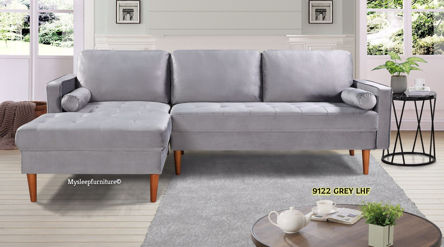(9122 GREY LHF)- VELVET FABRIC SECTIONAL SOFA
