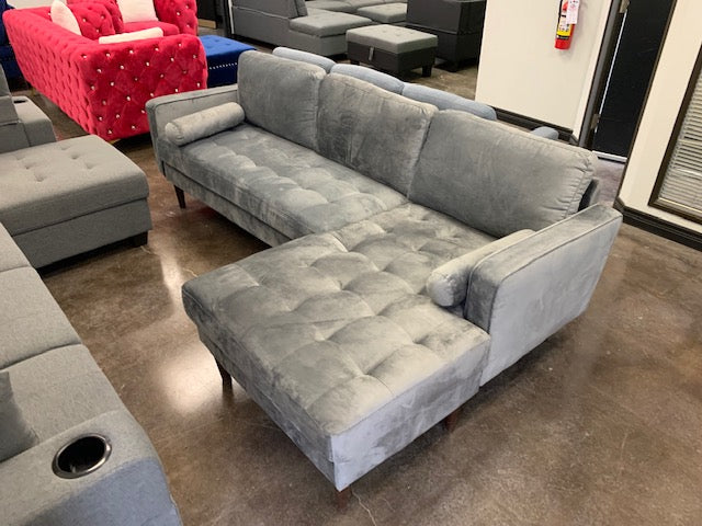 (9122 GREY RHF)- VELVET FABRIC SECTIONAL SOFA