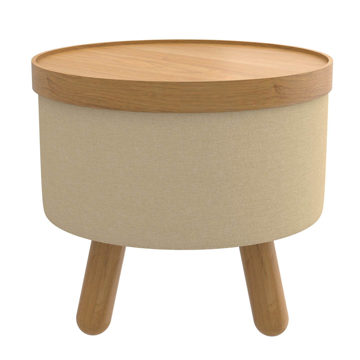 (BETSY BEIGE AND NATURAL)- ROUND- FABRIC STORAGE OTTOMAN