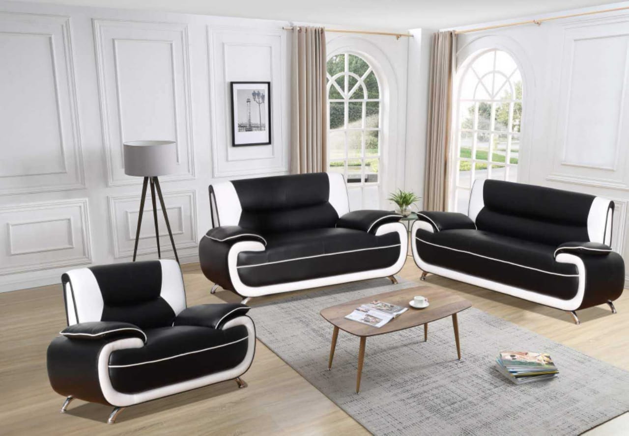 (DALIA BLACK/ WHITE)- LEATHER SOFA + LOVESEAT + CHAIR- TEXT OR WHATSAPP 416 319 8851 FOR STOCK AVAILABILITY BEFORE PAYING
