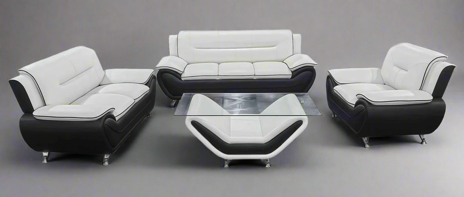 (FELIX WHITE AND BLACK)- LEATHER SOFA + LOVESEAT + CHAIR- TEXT OR WHATSAPP 416 319 8851 FOR STOCK AVAILABILITY BEFORE PAYING