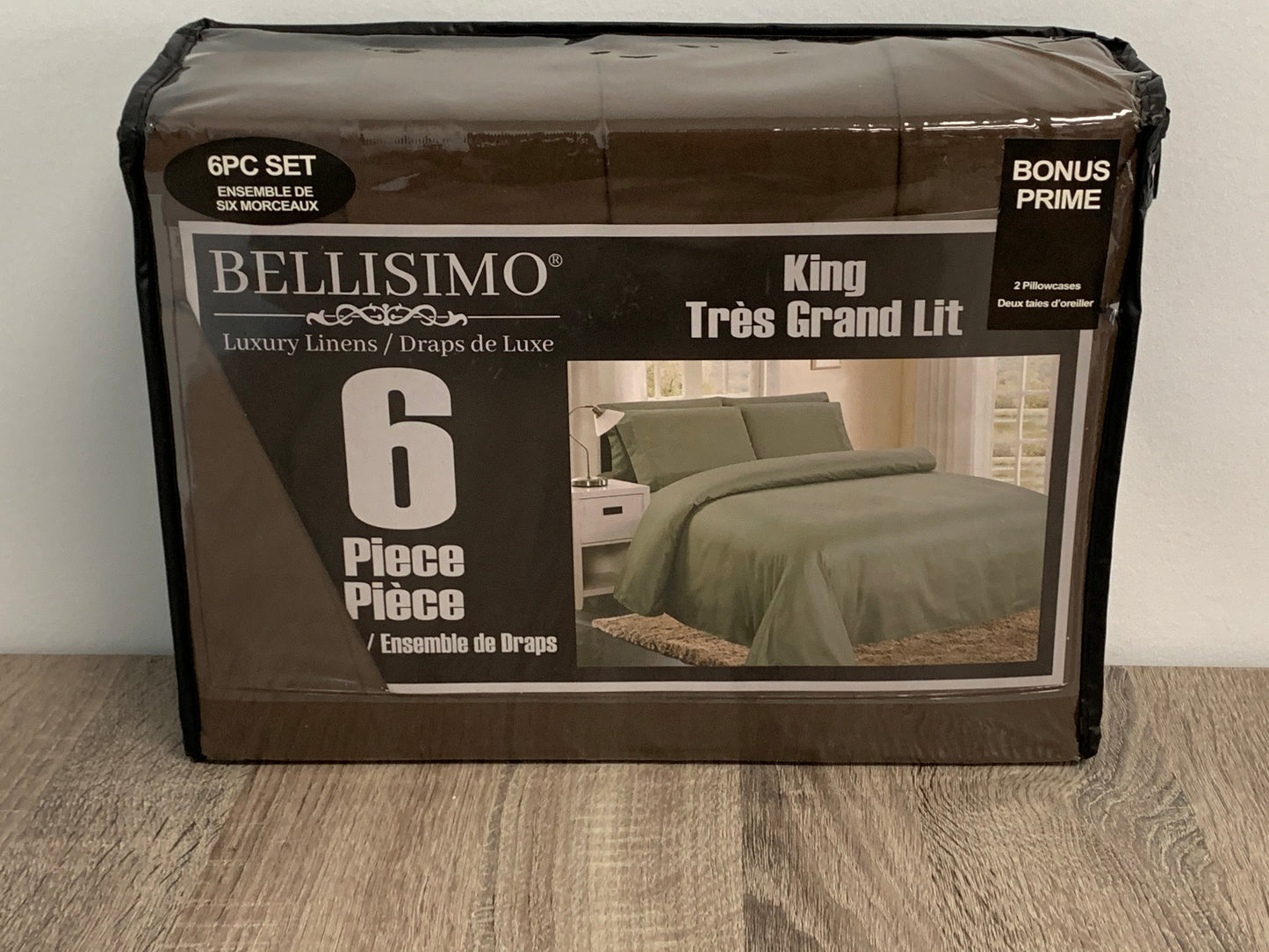 KING SIZE- (BELLISIMO DARK BROWN)- 6 PC.- SHEET SET