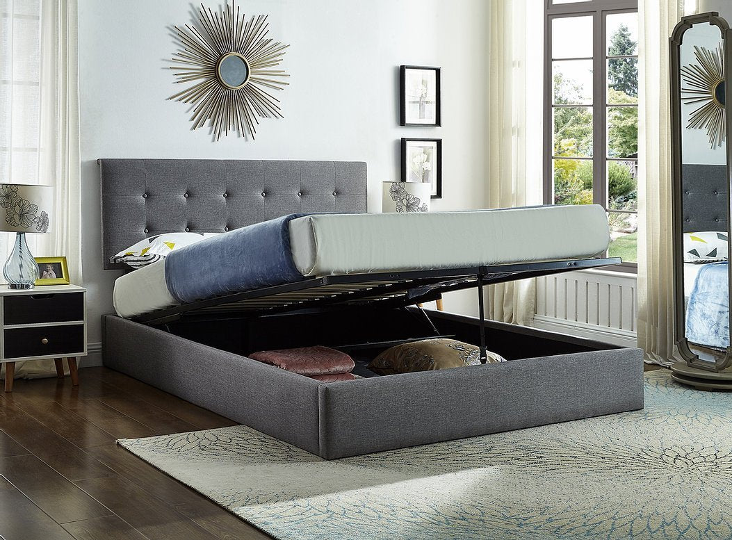 QUEEN SIZE- (5445 GREY)- FABRIC BED FRAME- WITH LIFT UP STORAGE
