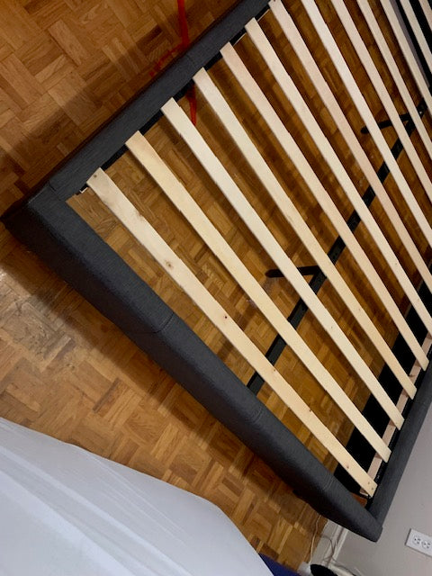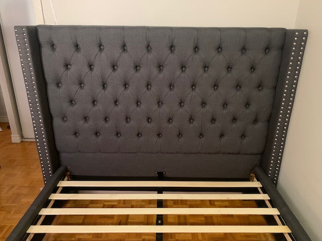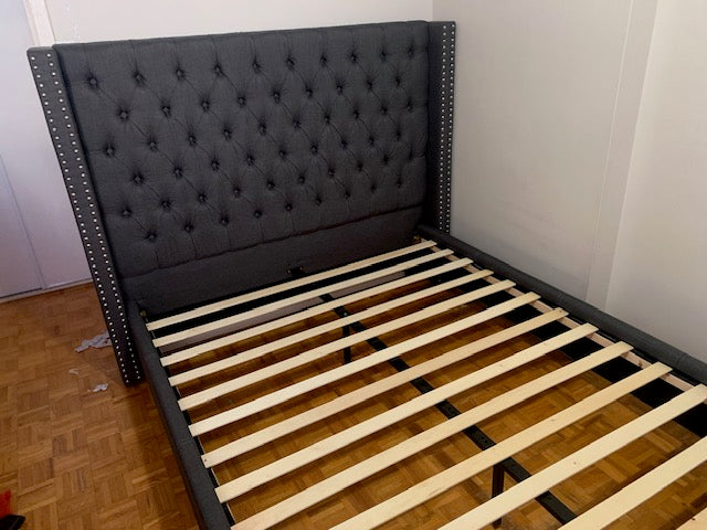 QUEEN SIZE- (5897 GREY)- BUTTON TUFTED- FABRIC BED FRAME- WITH SLATS