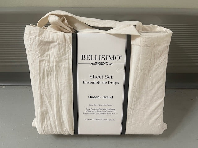 QUEEN SIZE- (BELLISIMO CREAM)- 4 PC. SHEET SET IN A CLOTH BAG