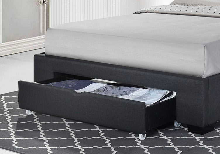 QUEEN SIZE - (QI SOFIA CHARCOAL)- FABRIC BED FRAME - WITH DRAWER