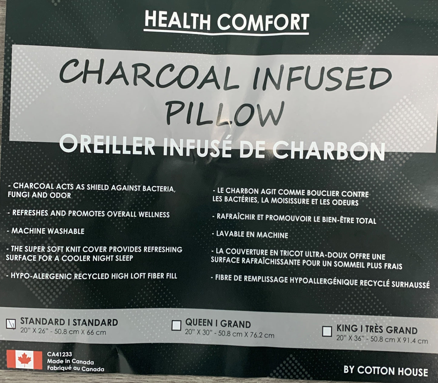 STANDARD SIZE- (BAMBOO CHARCOAL)- SOFT- CANADIAN MADE PILLOW