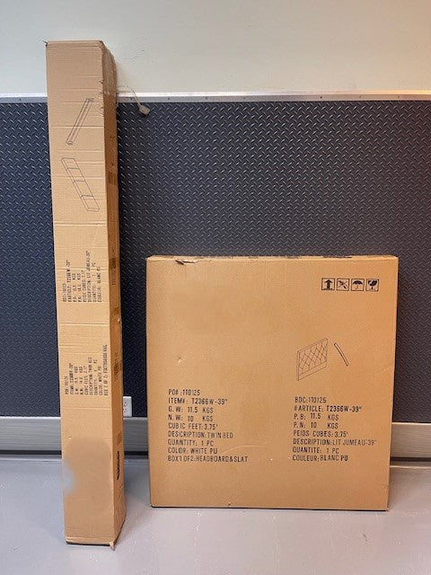 TWIN (SINGLE) SIZE- (2366 WHITE)- CRYSTAL TUFTED- LEATHER BED FRAME- WITH SLATS